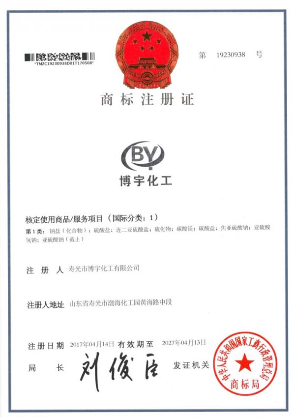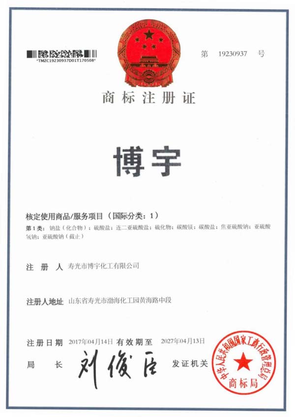 公司于2017年4月14日在國家工商總局商標注冊司成功注冊“博宇“商標